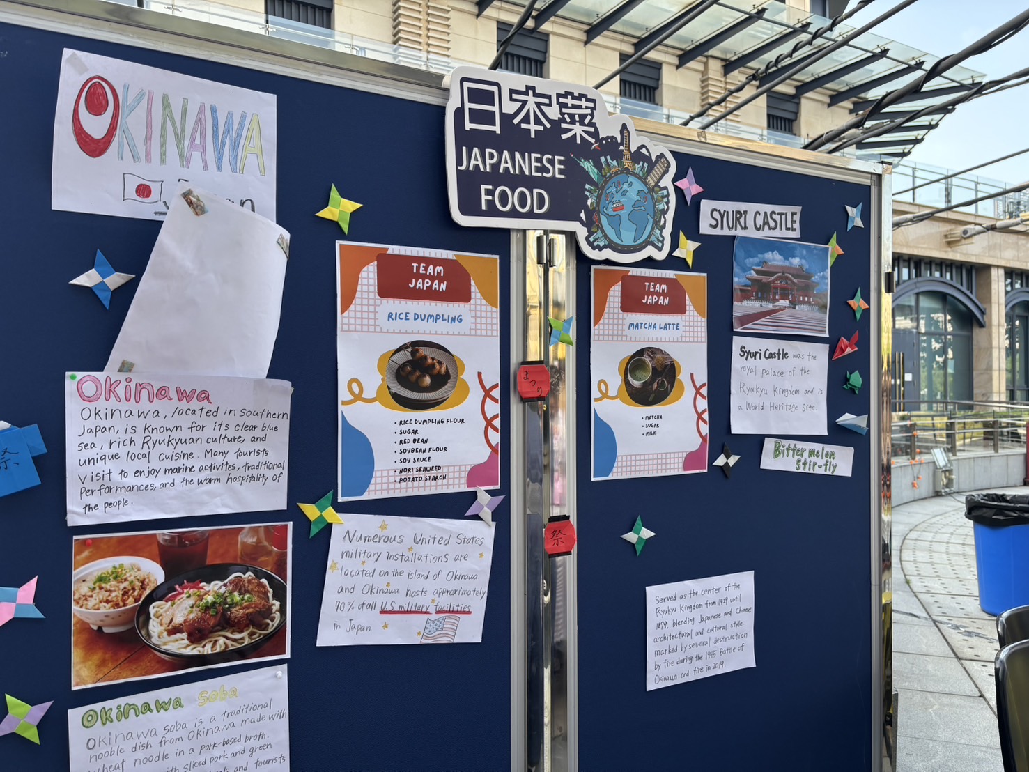 私たち日本人チームは6人で協力し、団子と抹茶ラテを提供しました!
