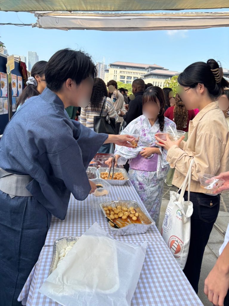 また、日本文化を研究するサークルの方から浴衣を借りて参加したところ、日本ブースは非常に人気で、150人分はあっという間になくなってしまいました。そのおかげで、他の国のブースも回る時間ができ、ミャンマーのスープやインドのスパイシーなご飯など、さまざまな料理を楽しむことができました。