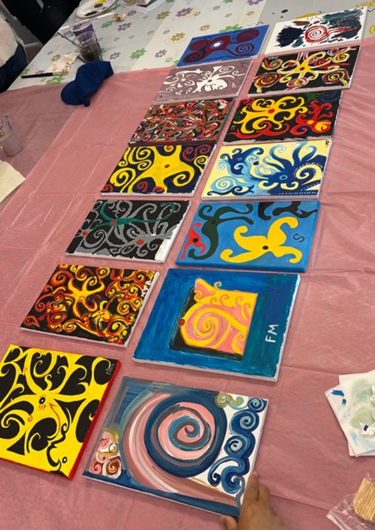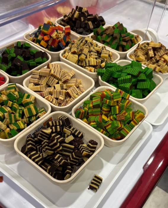 おまけ:「Orang Ulu Tree of Life motif」というサラワク州の伝統的なデザインを描くイベントに参加した際の写真とサラワク名物「Kek Lapis」の写真です。