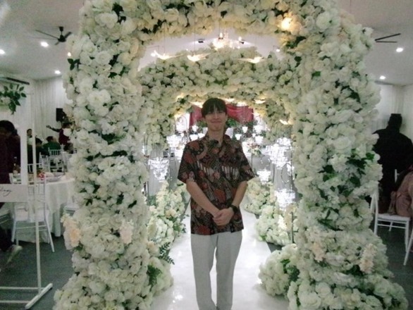 今回の滞在では、イスラム教の結婚式文化を体験するとともに、現地の自然や友人との交流を通して、非常に充実した時間を過ごすことができました。結婚式は式場で行われましたが、モスクで行われることもあるそうです。具体的な人数は把握していませんが、数百人規模の参列者が集まる大規模なものでした。服装は、伝統衣装であるバジュ・マラユやバジュ・クルンを身にまとった人が多く、私服のような格好の人も数名いました。会場全体が華やかでありながらも厳かな雰囲気に包まれていた。自分自身もバジュ・マラユを着用して参列しました。式では、イスラム教の教えに基づいた祈りや儀式が行われ、日本の神前式や教会式とは異なる文化を強く感じました。また、日本の結婚式では一般的にアルコール類が提供されるが、イスラム教徒の結婚式では一切提供されず、多種多様なマレー料理がビュッフェ形式で振る舞われた点も大きな違いでした。さらに、日本ではご祝儀を包む習慣があるのに対し、マレーシアでは必ずしも金銭的な贈り物が重視されるわけではなく、参列し祝福の気持ちを直接伝えること自体が重要視されている点が印象的でした。式全体を通して、宗教と家族、地域社会の結びつきの強さを強く感じ、異文化理解を深める貴重な機会となりました。